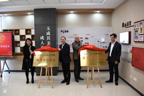 院长吴磊、副院长魏正启,相城区教育副局长缪芙蓉,相城高新区(元和街道)党工委委员王志强共同为“苏州大学熟女无码 教育实习基地”和“苏州大学交响乐团教育实践基地”揭牌。